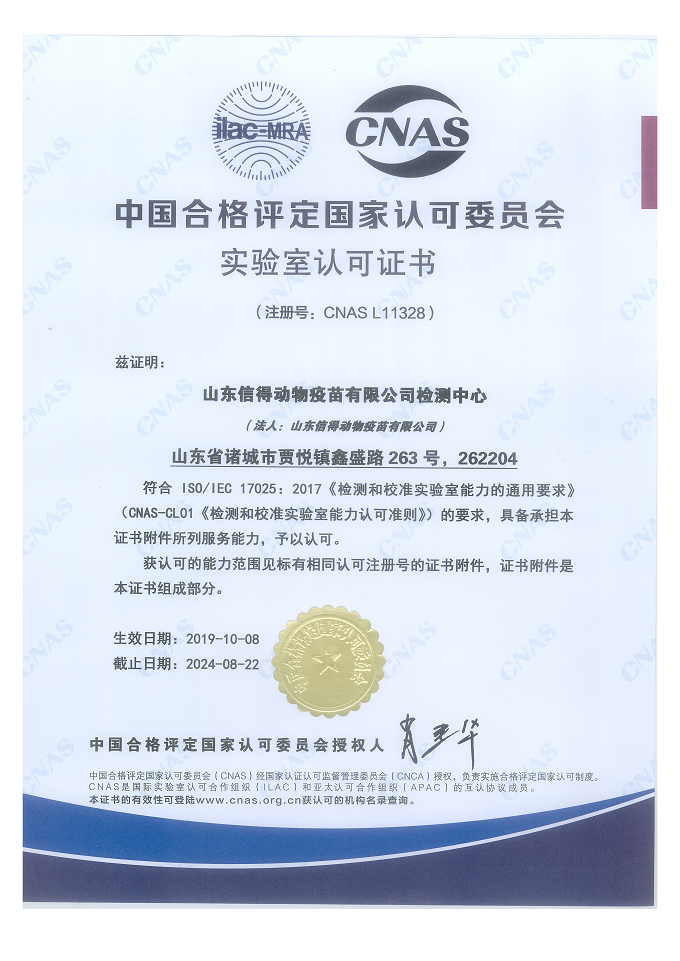 山东MK体育动物疫苗有限公司CNAS平台获得国家认证,并通过农业部GCP认证;